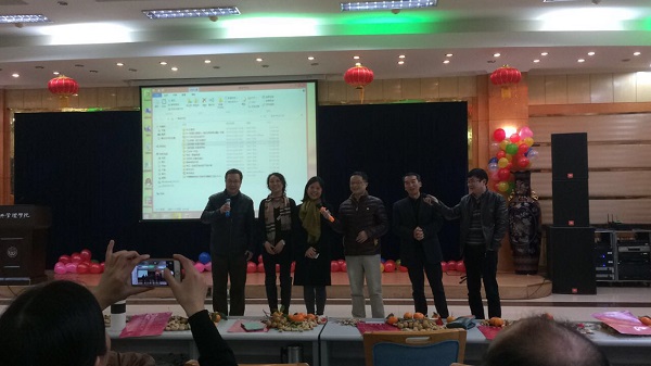 和公共管理学院的领导和教职工欢聚一堂,召开迎新晚会,晚会由李佳和李雪松主持。