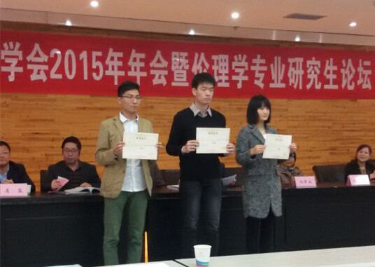 本届年会的主题是“当下道德冲突与伦理问题”,我校伦理学专业2014级硕士研究生高洋在会上以《试论新媒体时代我国大学生公益精神的培育》为题做了主题发言。本次论坛下设“新媒体时代的道德冲突”、“传统伦理与现代化”、“社会治理中的伦理问题”等若干征文参考选题,收到来自我市各大高校及中国社会科学院、复旦大学、东南大学等外省部分高校专家学者与研究生的参会论文共计75篇。我校研究生投稿踊跃,论文内容涉及公益伦理、公共管理伦理、科研伦理、社会伦理等多个方面,主题明确、视角新颖、立论深刻,得到了与会专家学者的认可与好评。经专家组评阅,我校2013级硕士研究生郭笑雨提交的论文《从德性论与义务论视角思考“大格局观”》和周丹提交的论文《基本医疗服务供给中公共性价值缺失问题探析》获得研究生论坛一、二等奖,陈钟予、李小风、高洋、罗潇4位同学的论文分获三等奖和优秀奖。