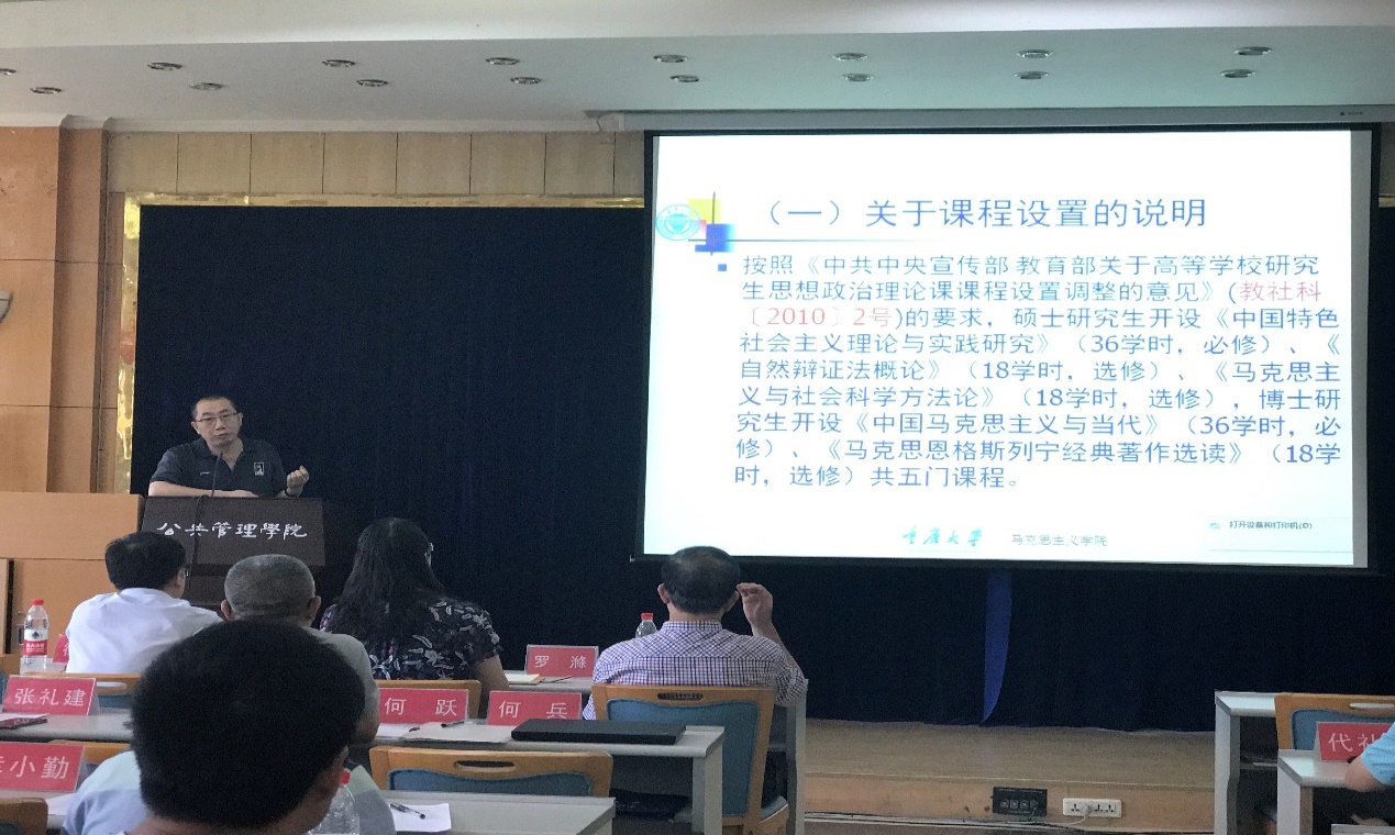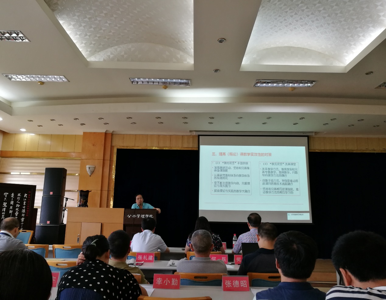 马克思主义基本原理教研室、毛泽东思想与中国特色社会主义理论教研室、思想道德修养与法律基础教研室、中国近现代史纲要教研室、研究生思想政治课教研室等五个教研室主任分别从各教研室的师资队伍状况、当前教学环节中存在的突出问题、未来改革方向及对策建议等三个方面做了汇报。教研室主任们做了精心准备,汇报当前“思政课”教师队伍的工作态度,在师资力量紧张的条件下仍然高效完成全校本科生和研究生的“思政课”教学任务;此外对于部分老师试点推广MOOC、翻转课堂等新的教学模式也进行了介绍。与此同时,教研室主任们也指出影响思想政治理论课建设一些突出问题,如现有师资队伍数量严重不足、年龄结构偏大;教学班级规模较大、课堂讨论难以深入;教学方式较为陈旧,难以适应新媒体时代学生的要求等。在对策建设上,提出了集中力量引进新鲜力量,充实师资力量;加强兄弟院校间的相互交流学习,开阔教师的教学视野;加强对教师队伍的业务能力培训,提升教师教学技巧及能力等。