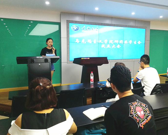 学生会主席张国茹布置学生会近期的重点工作,首先是建立良好的规章制度,其次是要积极创新开展各项活动,三是开展与外院各学生组织的交流活动,四是定期学习研讨。2017级研究生杨蕾同学代表新进干事发言,她说学生会组织是一个展示自我,证明自我的平台,足球比赛