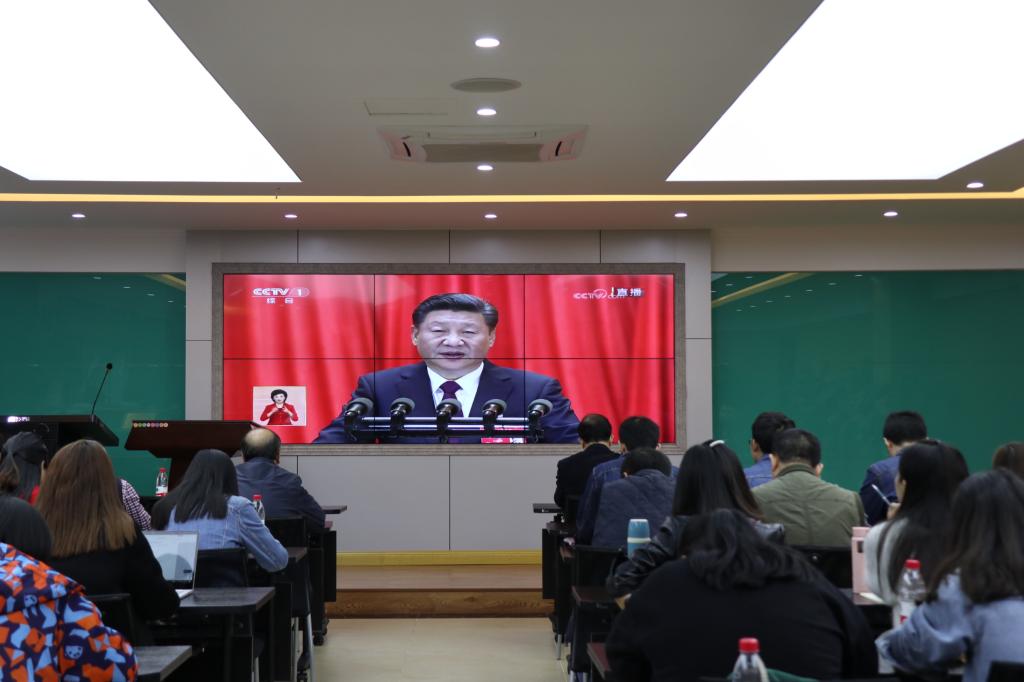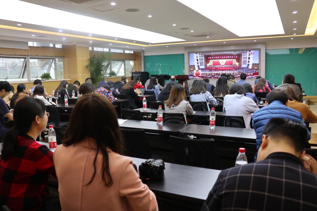 于10月18日上午组织师生在人文社科楼408室观看中国共产党第十九次全国代表大会开幕会直播,院长肖铁岩、党委副书记(主持工作)罗滌、副院长徐鲲和部分师生到场全程观看。开幕式结束后,学院第一时间组织师生进行了座谈交流。