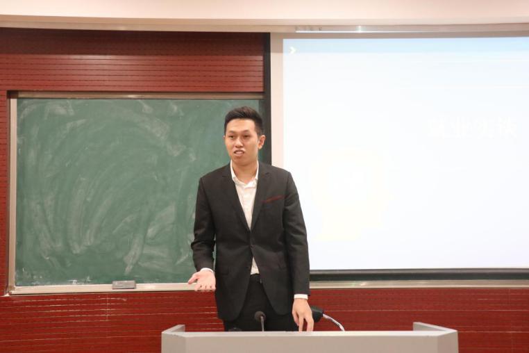 就在大家还在对白培鑫学长的发言意犹未尽时,机械工程学院的杨攀武学长带着他的“面经”隆重登场。学长“久战面场”,经验丰富。他的语言时而幽默,惹得大家哄堂大笑,时而一语中的,让人恍然大悟。他还给我们举出了很多求职过程中的典型实例。其中让人印象最深的就是他关于遇到刁难问题的回答,他指出:“重要的是态度,而不是答案,一定要实事求是,切勿口若悬河”。总而言之,学长的分享让人印象深刻,收获多多。