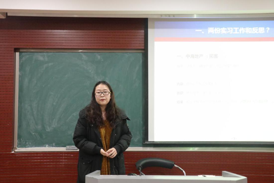 此次分享会以一个极具吸引力的小视频拉开序幕,主要介绍了在招聘会前期的准备中我们的着装要求、简历制作等具体事宜。在接下来的就业实谈阶段,三位优秀的学长、学姐分享了他们的求职经验。