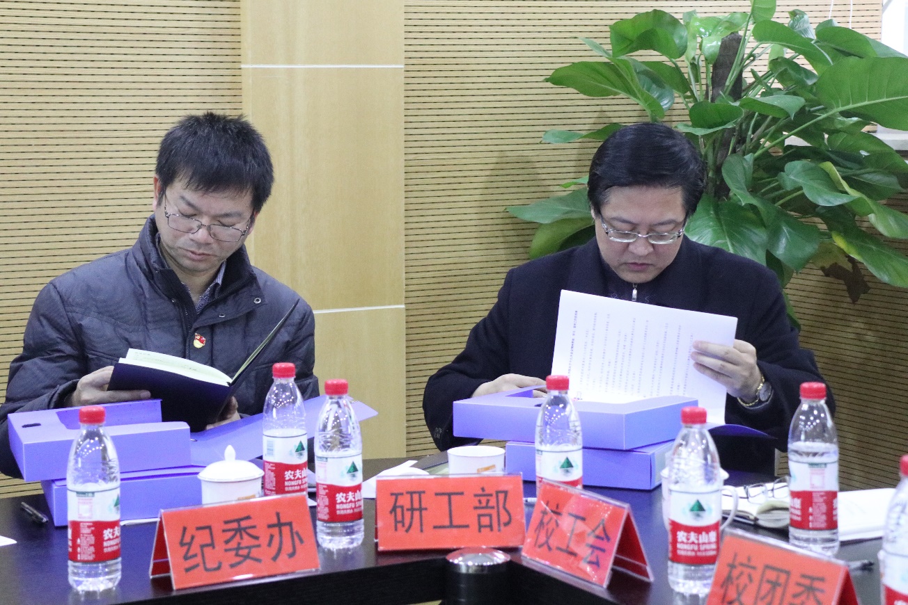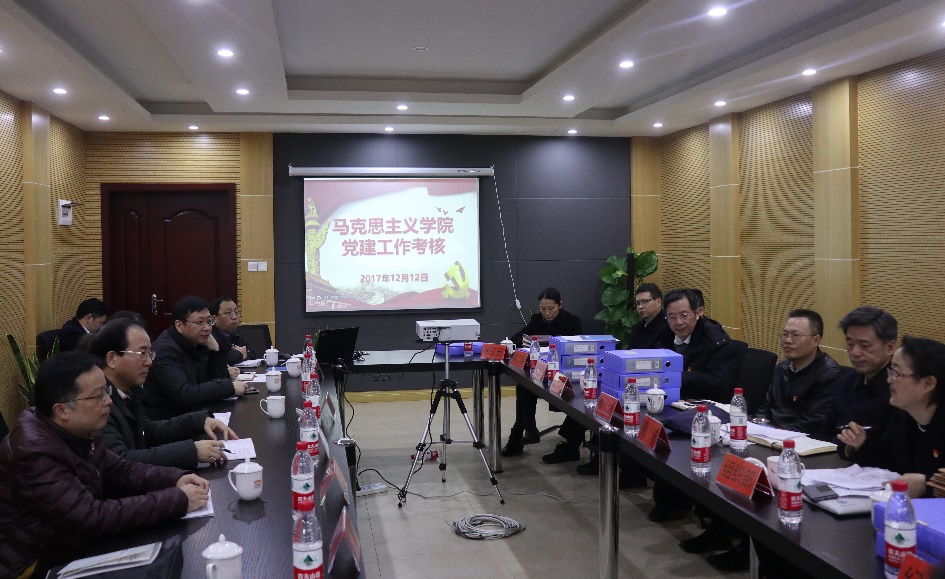对国家重要会议精神传达的途径以及效果、学院宣传工作的具体展开、十九大宣讲团师生参与度、与理工科学院之间的交流学习等方面的情况。考核组成员也分别围绕相应的工作对学院工作提出了建议和反馈。