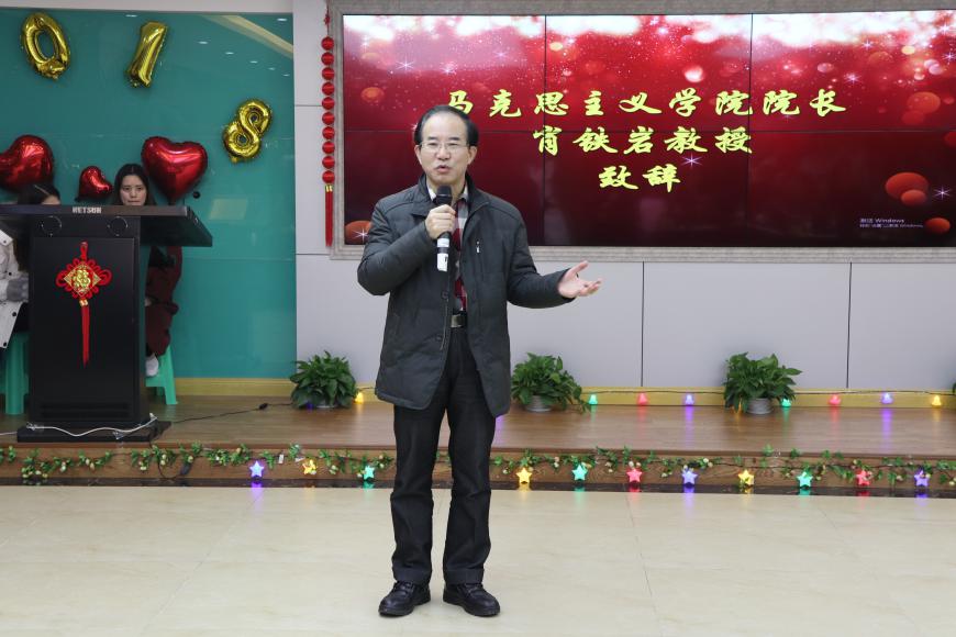 晚会开始之际,肖铁岩代表学院领导致辞,他对全体师生2017年所做的工作与努力给予了充分肯定并表示衷心感谢。他说,足球比赛
