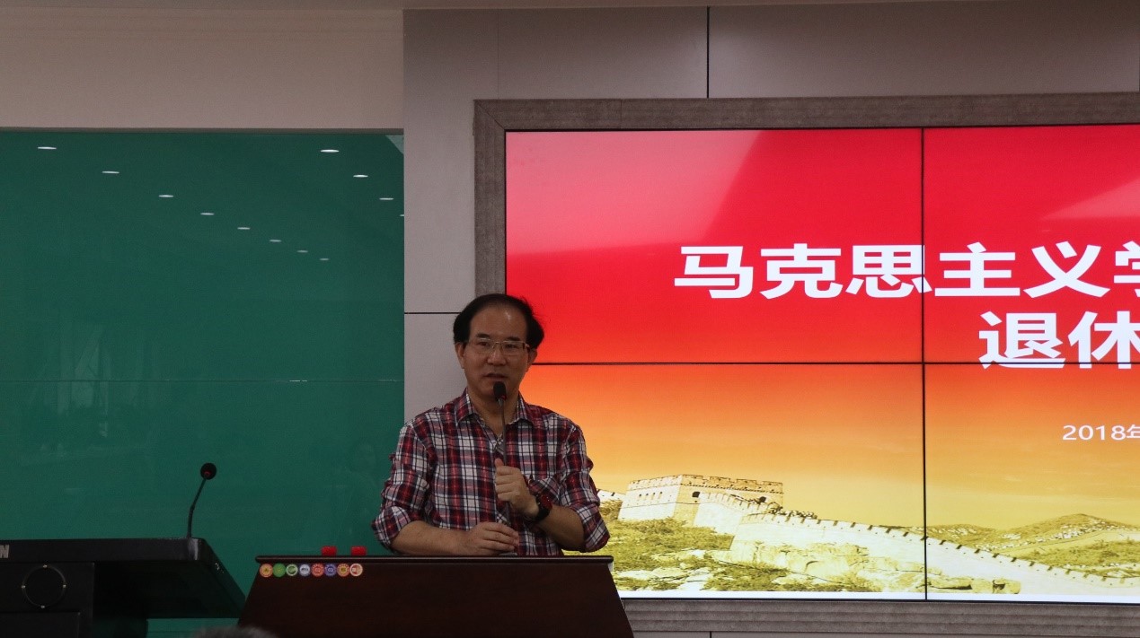 肖铁岩代表学院领导讲话,他充分肯定了梁平教授多年来在教学、科研和学院发展等工作中所作出的突出业绩和重要贡献,希望学院全体老师向梁教授学习,并祝愿梁教授退休后身体健康、生活幸福,希望他继续关心学院的发展。