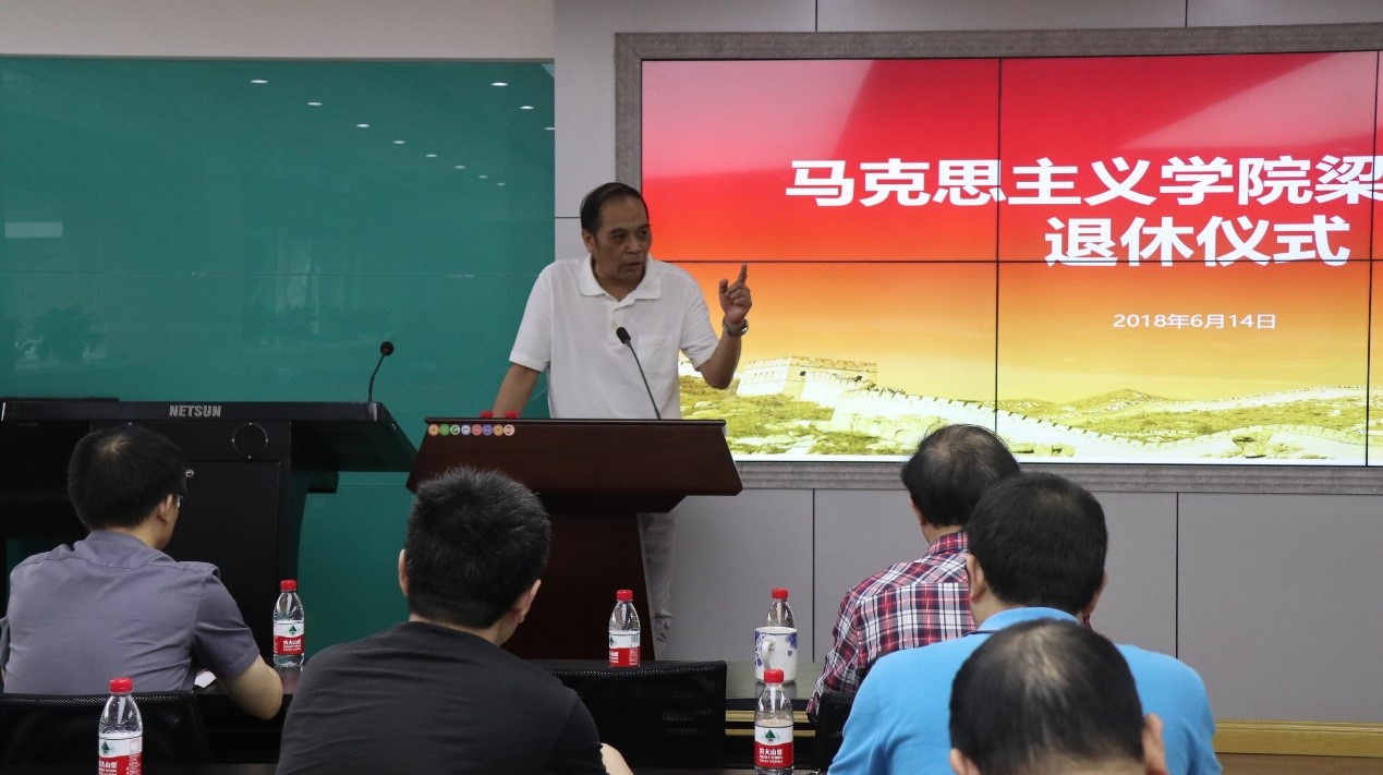 梁平教授发表了诚挚的退休感言,他对选择思想政治理论课教学作为一生主要职业而倍感荣耀,他感谢组织的培养,并祝愿学院早日成为全国重点足球比赛!梁教授表示将力所能及地为学院发展做贡献,并对学院未来的发展充满信心和期待。