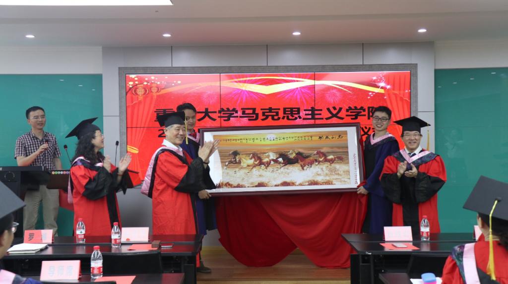 在授位仪式结束后,2018届毕业生为学院赠送纪念品,学院则为每位毕业生赠送一本《红岩》,期待他们能传承红岩精神,走好人生的每一步。