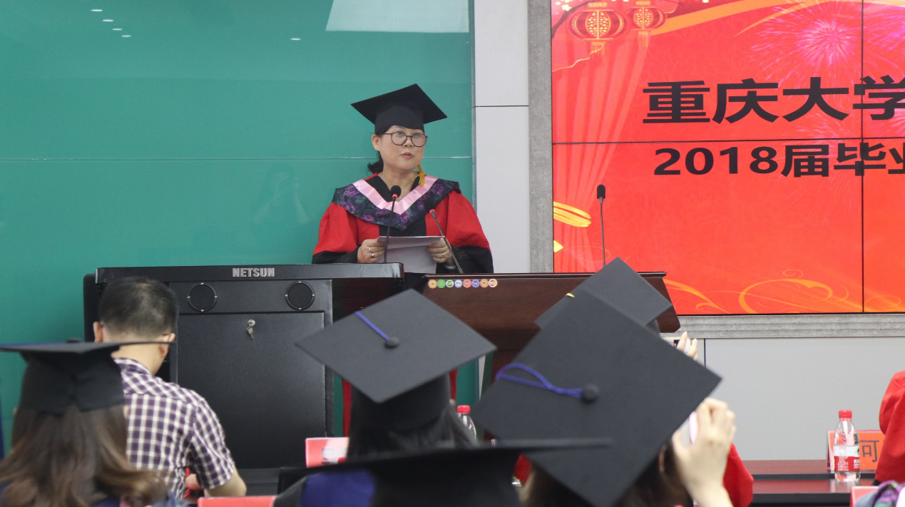 庞永红教授代表硕士生导师向毕业生致以衷心的祝贺。她希望即将走出校园的毕业生同学不仅要做一个有信仰的人,也要做一个善良的人,还要做一个认真有原则的人,更要做一个阳光乐观的人,要以良好的精神风貌向社会彰显“重大足球比赛人”的责任和担当。