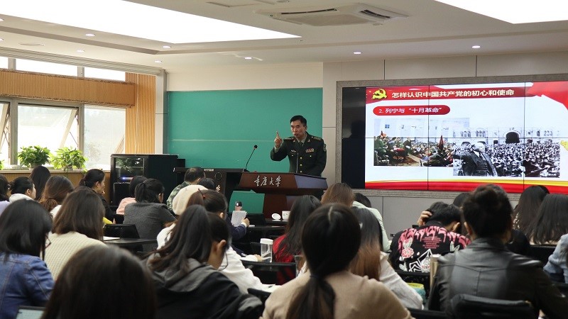 邱教授首先指出“为中国人民谋幸福,为中华民族谋复兴”是中国共产党的初心和使命,是激励中国共产党人不断前进的根本动力,彰显着人类道义的制高点。随后,邱教授引经据典,列举了马克思、恩格斯与《共产党宣言》、列宁与“十月革命”、陈望道与“信仰的味道”、党的一大、党的七大、开国大典与人民英雄纪念碑、邓小平“南方谈话”、党的十八大后习近平的深切思考等一个个鲜活的事例重温了中国共产党的初心和使命。他强调,作为一名党员、一名入党积极分子、一名马克思主义理论的学习者,必须明确“什么叫马克思主义?”、“怎样认识中国共产党?”这两个问题。邱教授以钱学森、史来贺、王庆喜等优秀共产党员的先进事迹和崇高精神告诫大家,共产党员的身份无比珍贵,加入中国共产党会让我们的人生更加闪光,党的初心的接力棒需要后来人,年轻一代必须为实践党的初心而接力奋斗!