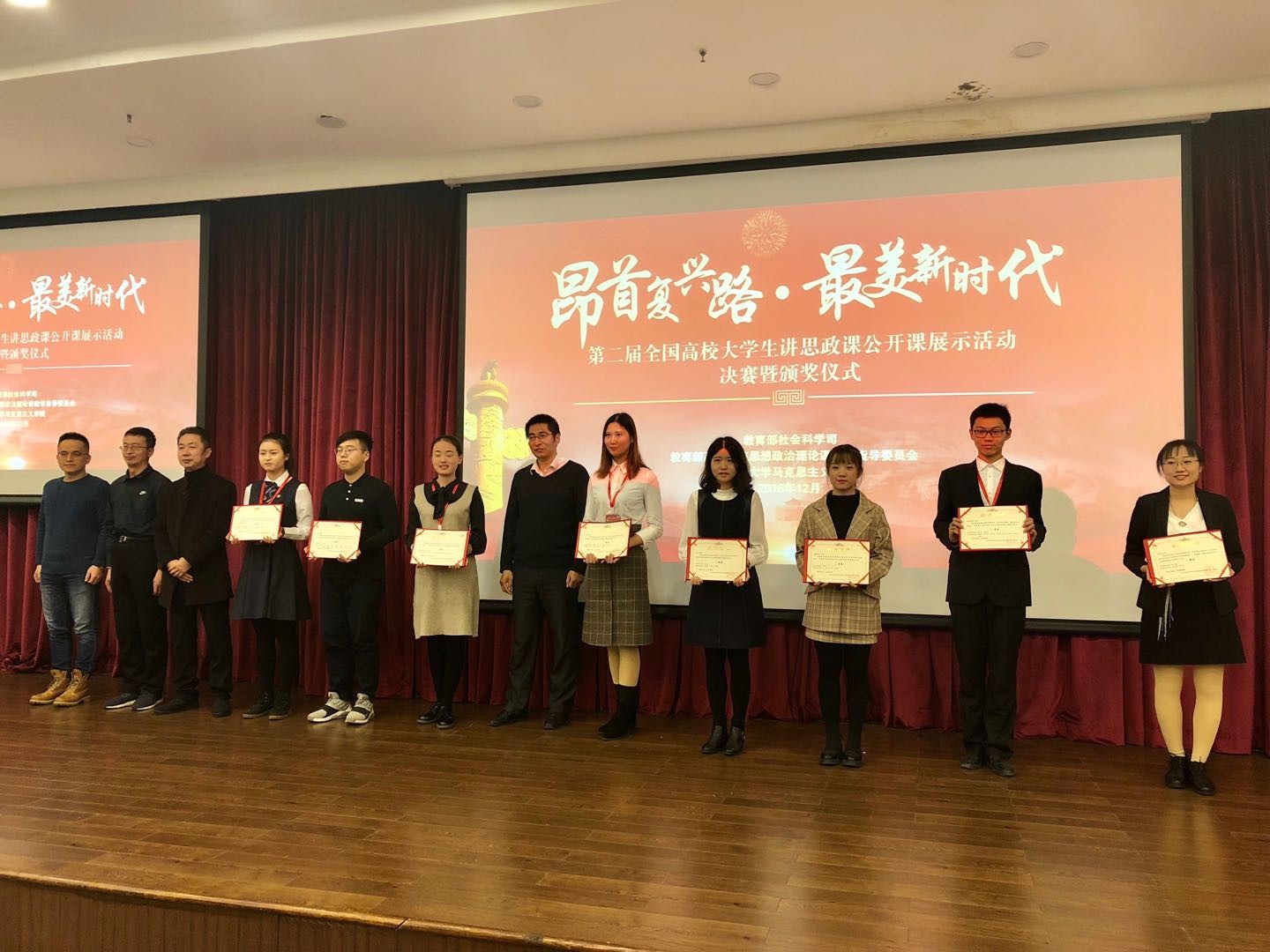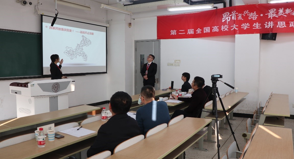 “昂首复兴路·最美新时代”第二届全国高校大学生讲思政课公开课展示活动自2018年6月启动,各参赛队围绕“马克思主义基本原理概论”、“毛泽东思想和中国特色社会主义理论体系概论”、“中国近现代史纲要”、“思想道德修养与法律基础”、“形势与政策”五门课程中的有关章节或专题,以“昂首复兴路·最美新时代”为主题开展教学展示活动,引导学生深化对思政课教学内容的认识和思考,展现新时代大学生的马克思主义理论素养和精神风貌。截止10月22日,共收到104份作品,涉及30个省(区、市)100所高校,其中各省(区、市)提交作品90份,全国重点足球比赛提交作品14份。通过网络展示,专家和学生评委线上打分,共有64份作品获得表彰,14份作品进入决赛。由我校足球比赛