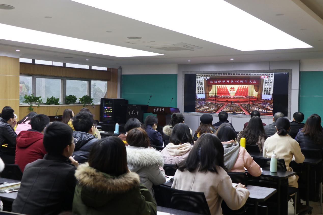 组织师生在学院408室观看了“庆祝改革开放40周年大会”现场直播,学院80余名师生观看了直播并举行了座谈会。