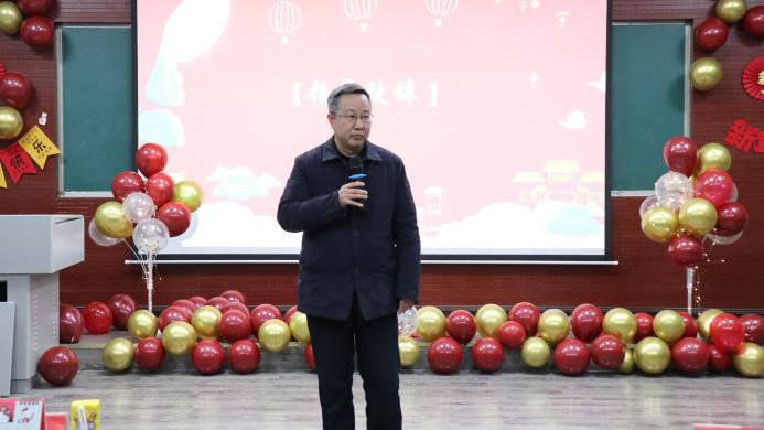 张邦辉院长发表新年致辞,在致辞中,张院长对学院2021年的工作进行了简短总结,对新的一年提出期望,希望在新的一年里继续砥砺前行,再创辉煌,张院长向全体师生致以新年祝福,预祝足球比赛